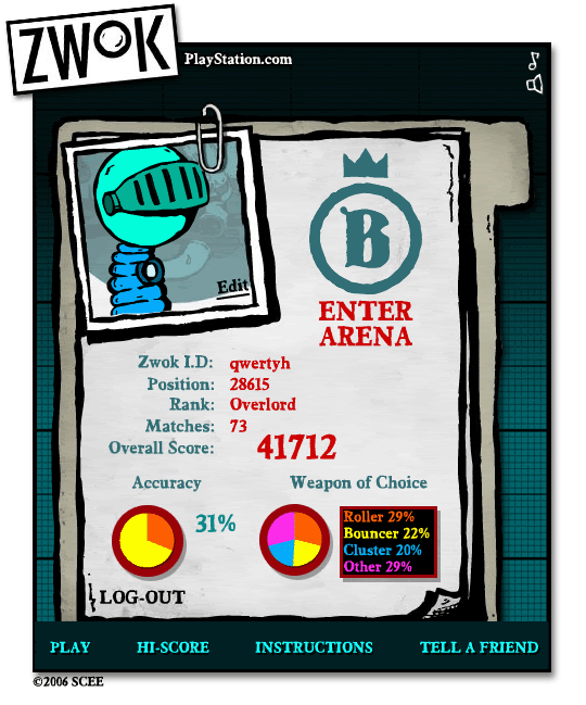 Zwok is a game where you have to throw balls at your opponents. I'm qwertyh on it. You can see my profile over to the left. I think it is really fun. Click it to enlarge.
